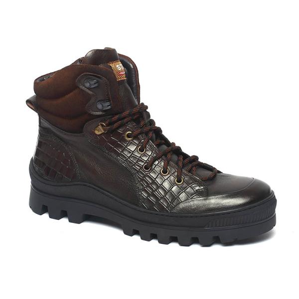 Dark Brown Lace Up Anti Odor Mens Genuine Leather Casual Boot
