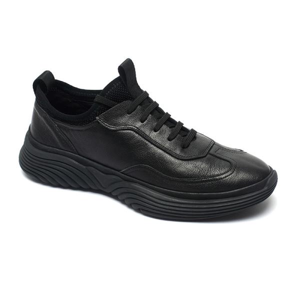 Rubber Outsole Mens Black Leather Sneakers For Sports Images |